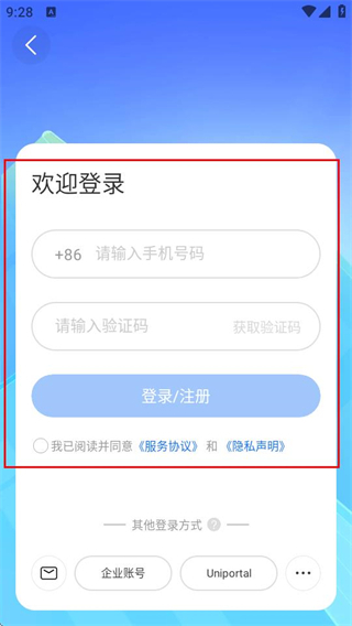 3进入登录界面后,依次填写所需信息、勾选相关协议,最后点击登录按钮,即可完成登录操作。
