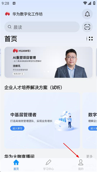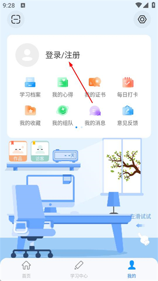 1、打开时习知应用,进入首页后,点击界面右下角的【我的】按钮,即可进入个人中心页面。