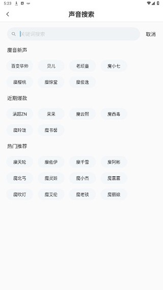 用户在首页点击上方搜索框即可进行关键词搜索,搜索自己喜欢的配音内容。