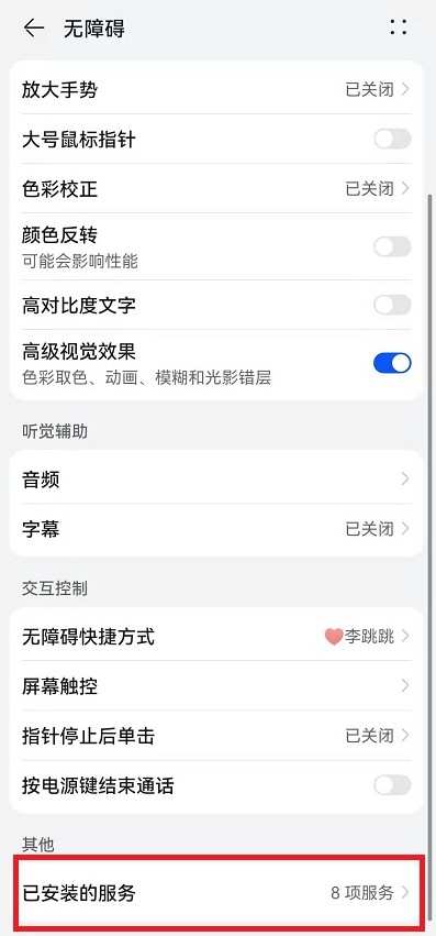 3、随后在手机设置里按顺序操作:先进入无障碍选项,接着点击已安装的应用,再找到李跳跳,最后为其开启无障碍服务授权;