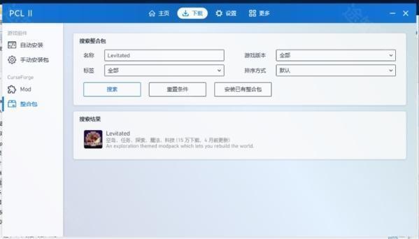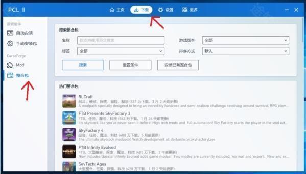 如果你没有整合包,你可以在页面中选择想要的整合包快速导入。