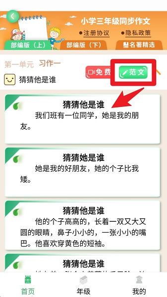 2、回到主界面后点击「首页」选项,即可查看当前年级对应的写作任务,点击具体题目就能进入对应的练习内容页面。