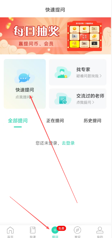1、用户进入软件之后可以直接在提问页面中点击快速提问即可进行下一步操作。