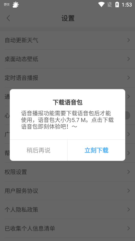1、首先我们点击定时语音播报功能,使用该功能前需要先下载语音包。