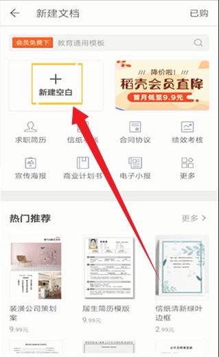 3、可选择空白文档或模板文档,本次以空白文档为例进行操作演示。