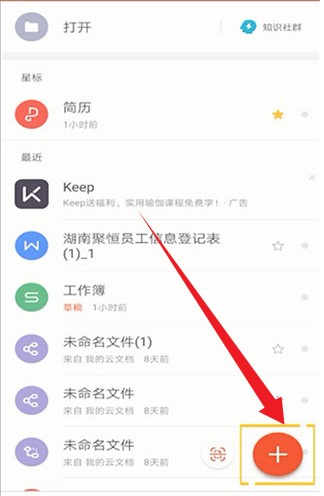 1、在本站安装 WPS 文档查看器,完成后打开软件并登录账号,进入首页后点击右下角 “+” 按钮。