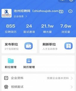 2、【企业名片展示】企业可在池州招聘网上传包含企业介绍、企业文化、员工福利等内容的企业名片,以此提升自身曝光度。