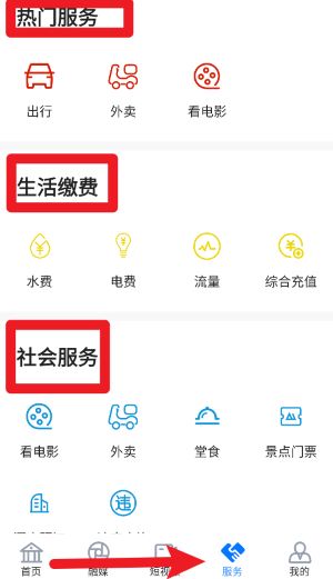 4、点击服务页面,即可使用出行、缴费、景点门票等热门服务,满足日常生活中的各类需求。