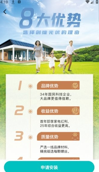 1、这款软件具备在线申请的功能,用户能够随时提交自己所需光伏电站的安装申请。