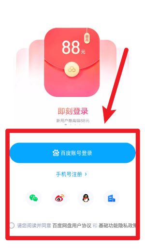 1、打开百度网盘后,用户可选择百度账号、手机号或第三方平台完成登录操作。