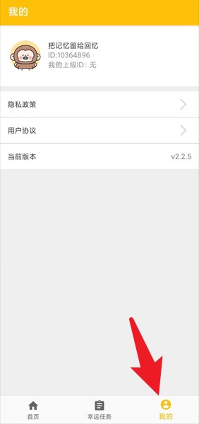 4、我的页面显示个人信息、ID账号及应用版本,也可查看隐私政策和用户协议内容。