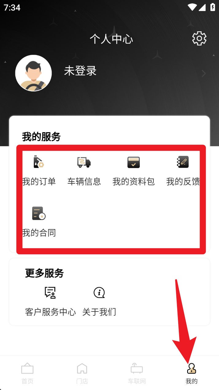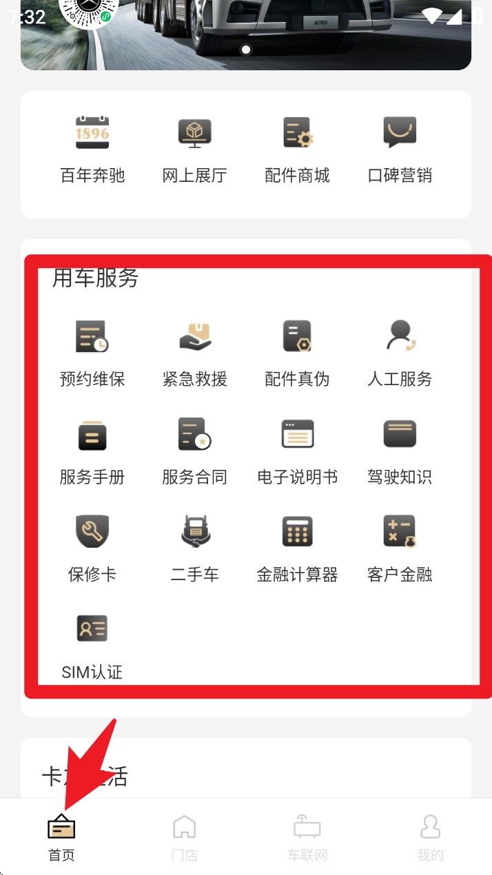 1. 进入首页后,点击用车服务模块,可查看预约维保、客户金融等功能,一站式管理你的车辆服务事项。