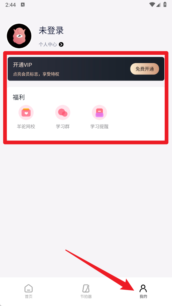 5、在“我的”页面中,用户能够查看个人信息、开通VIP服务,还可以使用学习群、学习提醒等附加功能。