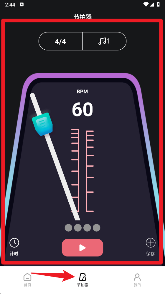 4、在节拍器板块,用户可调节节拍速度,开展节奏感与拍子感的练习。