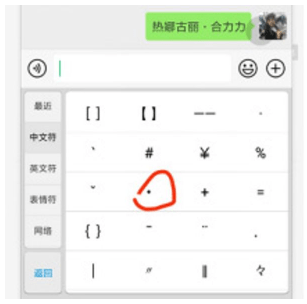 答:姓名中间的点,为“·”,详情如图。