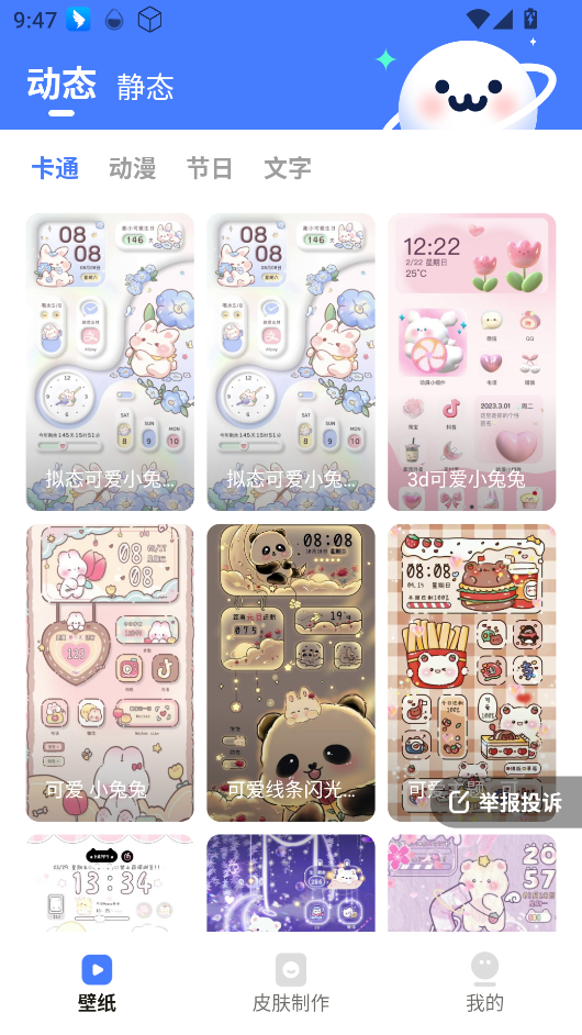 2、动态壁纸选择丰富多样:平台提供了种类繁多的动态壁纸资源,涵盖动漫角色、节日主题、创意动画等不同类型,能够为手机界面注入更多活力与趣味。