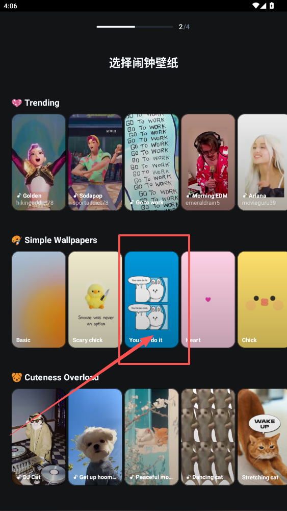 2.选择自己喜欢的壁纸,如小编箭头指的这,点击