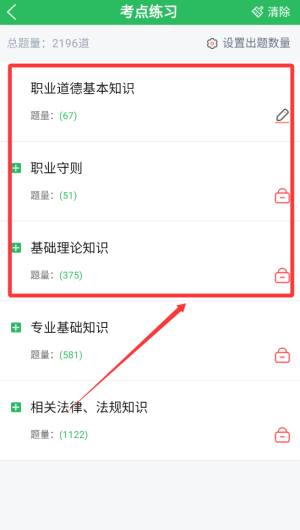 1、科目选择功能:可自由切换不同专业领域的练习内容,助力针对性强化特定知识板块,帮助用户快速定位目标科目并开启专项学习。