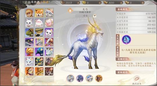 后续需重点留意对战力影响最为关键的几个方面,这也是需要投入最多精力之处。首先是出战宠物的挑选,无需过度收集,绝大多数玩家拥有一两只宠物,满足不同作战需求便已足够。其中一只为内功或外功输出型,另一只用作肉盾。获取宠物主要依靠挑战副本掉落引兽香,之后自行收集。这些稀有宠物经不断繁殖,还能得到变异品种,属性会更为强大。