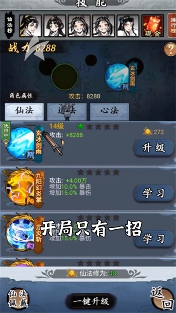 - 沉浸式修仙之旅:玩家从挑选适配功法起步,就此开启一段传奇征程。伴随角色逐步成长,玩家可解锁更多技能,并凭借持续不断的挑战提升自身战斗力。
