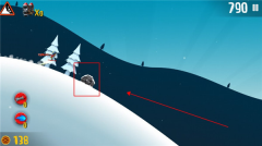 3、滑行的途中会遇到同样逃亡的动物,如企鹅、雪怪、老鹰等,可以通过触碰的方式骑上他们,骑上他们后速度会更高