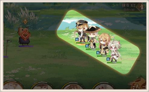 第三关为攻击顺序教学关卡,主要考察食魂间的技能协作。具体步骤为,首先让青团施展二技能,随后松鼠也施展二技能,进入下一回合后,松鼠再使用大招。通过这样的操作,松鼠能获得自身攻击提升的增益,并且当敌方攻击下降时,松鼠的大招还有一定几率触发暴击。