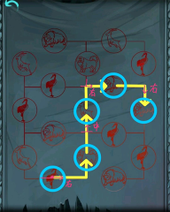 【房间内】于盒子中寻得针,从柜子里拿出蓝水晶,把蓝水晶放置到裂缝处(乾兑离)。做完此操作,人偶会改变姿势,这时出现乾兑离离巽坤坎的标识。随后进入下一步,在左边放置蓝水晶,拿取物品后再将物品放回原处,读完故事,接着取走红水晶。右边重复相同流程,最后用针进行扎刺,至此所有步骤完成。