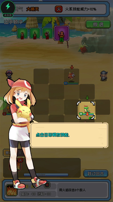 8、游戏界面上方显示的是出手顺序,以及精灵的速度相关
