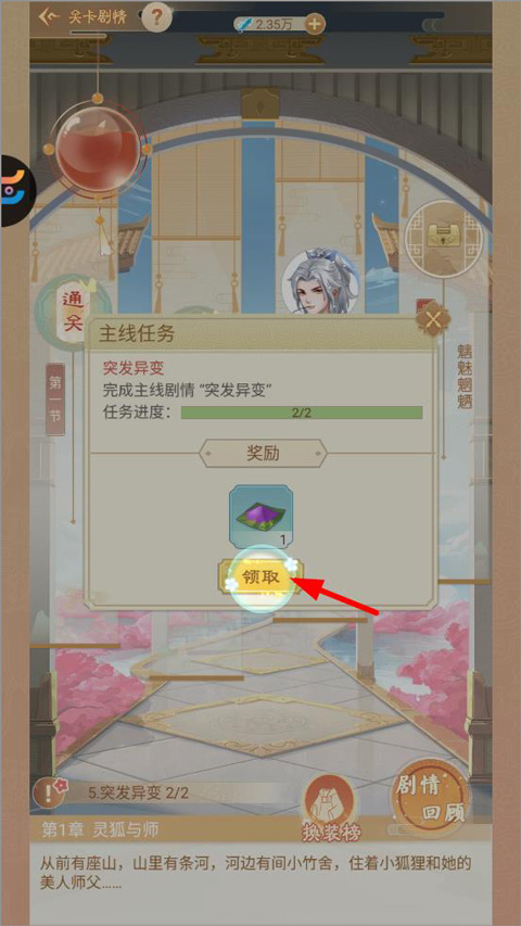 4、主线任务中玩家需要与游戏NPC完成剧情,解救师尊,第二节任务通关后可获得升级奖励;