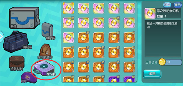 打开界面后可以看到精灵可以学习的技能,而技能上显示“已获取”,那就说明你已经拥有该学习机,可以学习该技能了。