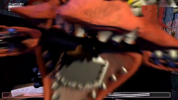 有一个全身仿佛被拆毁的玩偶,它每次移动都会发出类似信号受干扰的声音。它会途经正门,好在正门并没有危险性。当你在右管道看到闪灯时,要立刻戴上头套。要是听见噪声和嗵嗵声,这(大概)意味着它离开了。要是没能及时戴上头套,或者在它出现的时候打开了监控,它就会爬到天花板上。一直戴着头套虽能延缓它跳出来的时间,但终究难以逃脱。另外,你还可以上几次发条,如果时间不是5点,那还是退出吧。