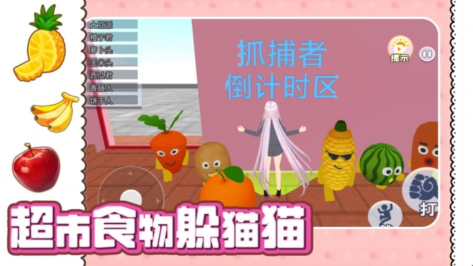 《超市食物躲猫猫安卓版》是一款极富趣味的休闲益智类游戏。在游戏里,玩家会扮演超市中的各类食物,像蔬菜、水果或者零食等。玩家需凭借巧妙的躲藏与灵活的移动,躲开购物者的目光,要是能成功摆脱被放入购物车的命运就算获胜。此游戏运用卡通风格打造,画面清新且可爱,操作简便,很容易上手。此外,游戏还融入了大量丰富的关卡设计以及策略元素,各个年龄段的玩家都适合在闲暇时光来体验,尽情享受紧张刺激的躲猫猫乐趣。