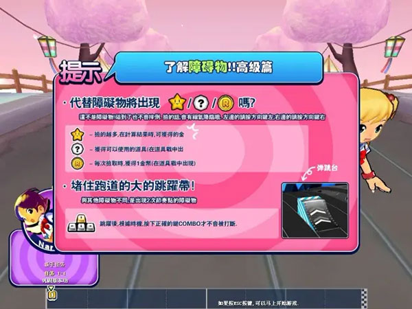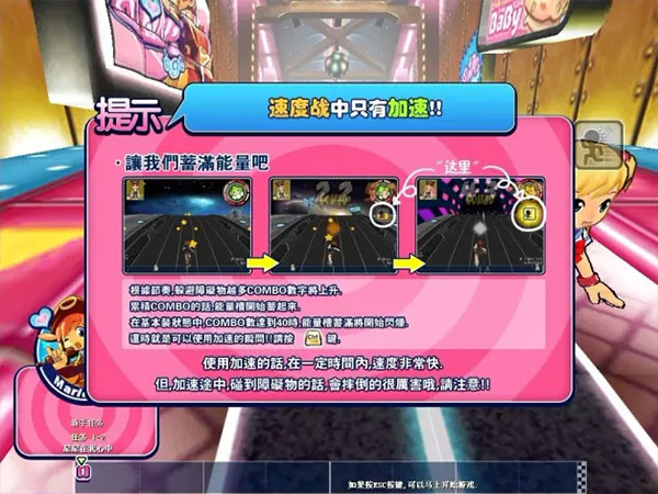 玩家得依据音乐节奏与屏幕提示,按下对应的方向键,操控角色于赛道上滑行。赛道中存在各类障碍物与道具,玩家需灵活应对,躲开障碍并收集道具。该游戏的目标是用最快速度跑完赛道,同时获取高分。