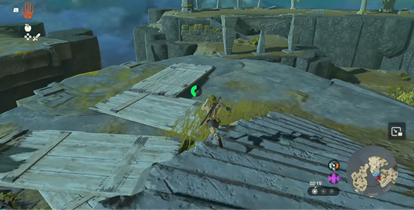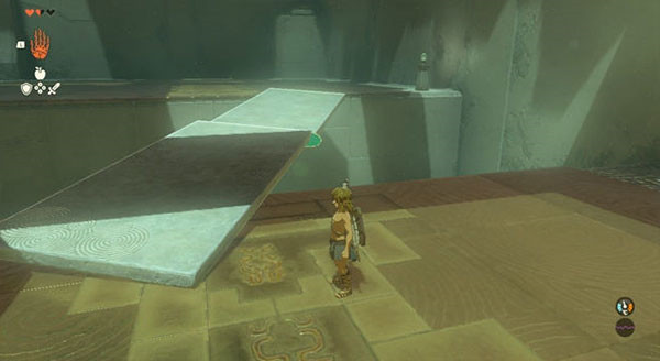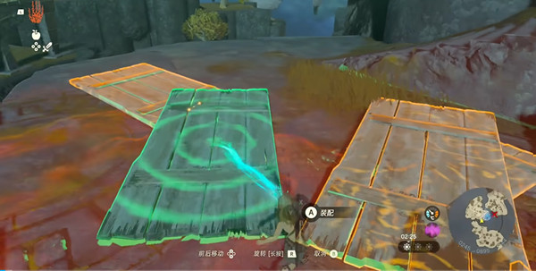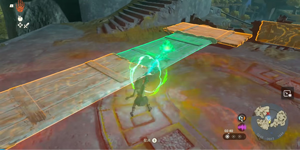 3、遇到第一个过道坎时,玩家需先启用究极手功能,按住R键,把前方的石板移至过道坎上并平放,随后玩家便可直接走过去。