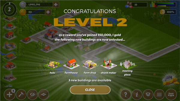 6、游戏中玩家不断扩建城镇后还能升级,升级可解锁新的房屋。