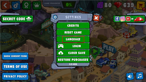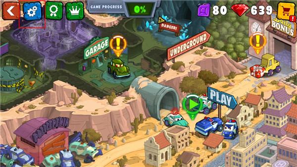 1、启动汽车吃汽车3的最新版本,点击左上角的【齿轮】图标。