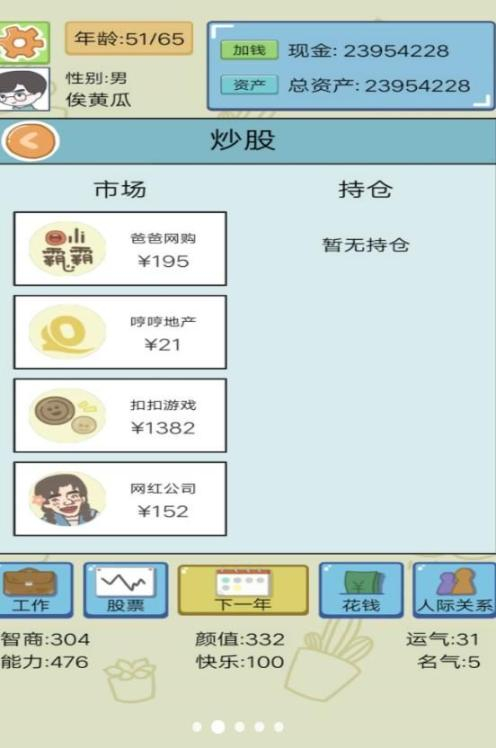 这是一款别具一格的人生模拟游戏,带你开启成为富豪的奇妙崭新旅程。在游戏里,你会遭遇形形色色的挑战,唯有凭借不懈奋斗,方能实现财富梦想。游戏精心设计了众多人生路径,你所做出的每一个选择,都如同蝴蝶效应般,深刻影响着未来的走向。于此,你能够自由自在地规划人生蓝图,尽情体验多元的生活方式,书写专属于自己的精彩人生篇章。在这个充满无限可能的游戏世界里,命运的缰绳,紧紧握在你的手中!