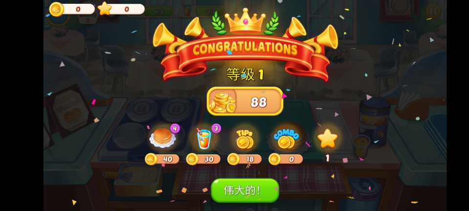 3、全力赚取更多的金币,升级和打造顶级的餐厅。