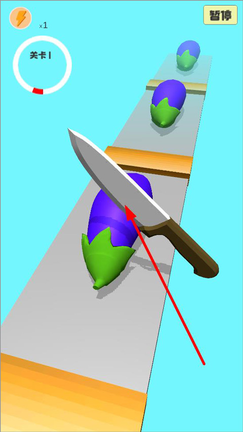 3、在操控案板上使用刀具切割蔬菜时,左上角会显示关卡进度提示,玩家能够根据该提示来进行游戏。