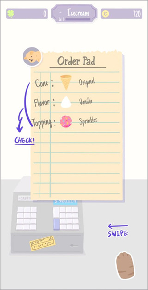 3、会有小动物来到玩家的餐车购买冰淇淋,玩家若选择猫猫,就得依据它所下订单,制作出不同口味的冰淇淋。