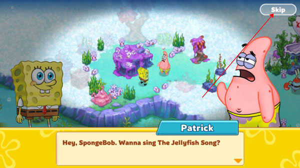 2、当进入游戏剧情后,我们会了解到,因为海底周边存在大量果酱,玩家需要对其进行清理。要是不想了解这部分内容,可点击右上角跳过。