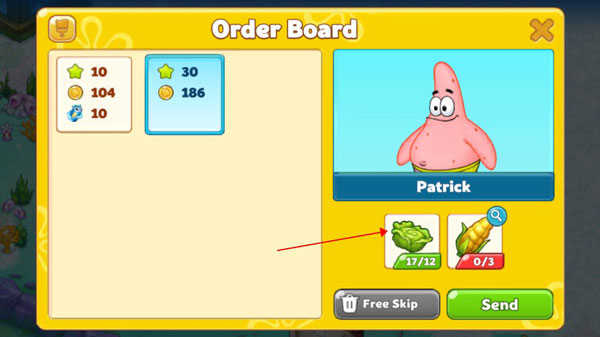 5、然后我们点击订单栏查看订单,可以看到派大星栏下需要一些生菜