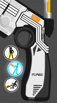 4、这位骑士借助腰带枪实现变身。首先,按下第一个按钮来组装手枪;随后,按下第二个按钮,让变身进入白热化状态,在这时扣动扳机。