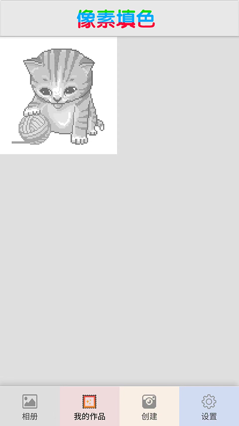 1. 打开像素填色涂鸦大师的安卓版本,首先看到的是【相册】、【我的作品】、【创建】和【设置】这四个频道。