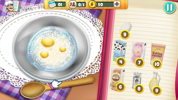 2、横版卡通风设计的边游戏边学习的烘焙技术的模拟娱乐小游戏。