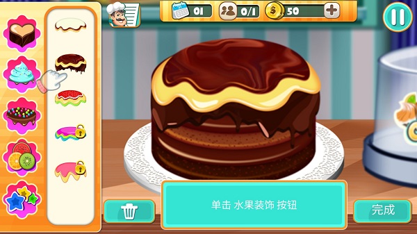2D平面给玩家带来十分直观的游戏体验。整体画面处理极为细腻,在游戏中,玩家可以通过手指拖拽来查看蛋糕的装饰,让蛋糕的烹饪过程呈现得更加逼真生动。毋庸置疑,身为蛋糕店老板,在蛋糕制作的设计上表现出色,色彩绚丽、光彩照人的蛋糕设计,为玩家带来更为直观的视觉感受。