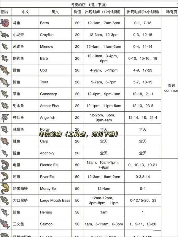 10、小镇公告板会有高价鱼种,需要在不同的时间和地点才能钓到(发到下一篇笔记了)。