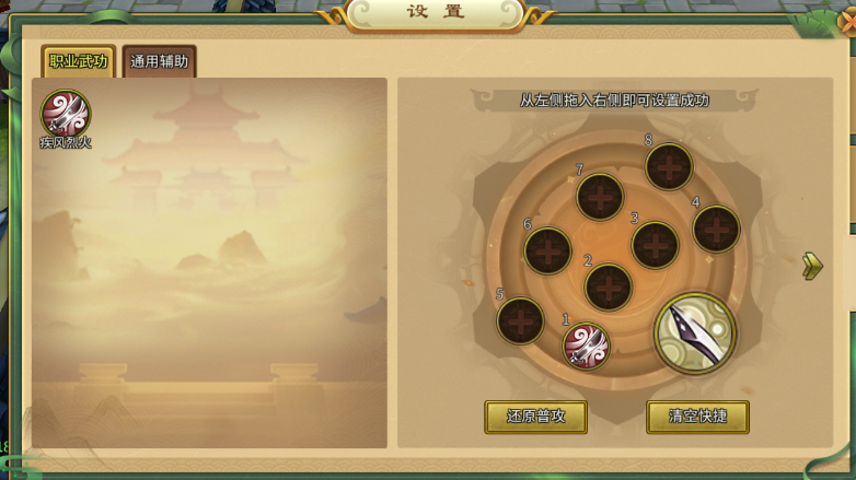 7、你能够为已学的武功或辅助技能设置快捷键,总共可设置8个,如此一来,战斗时便能轻松取胜。