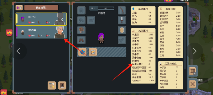 5、在此页面,你能够查看你部队的全体成员以及各项基础属性。