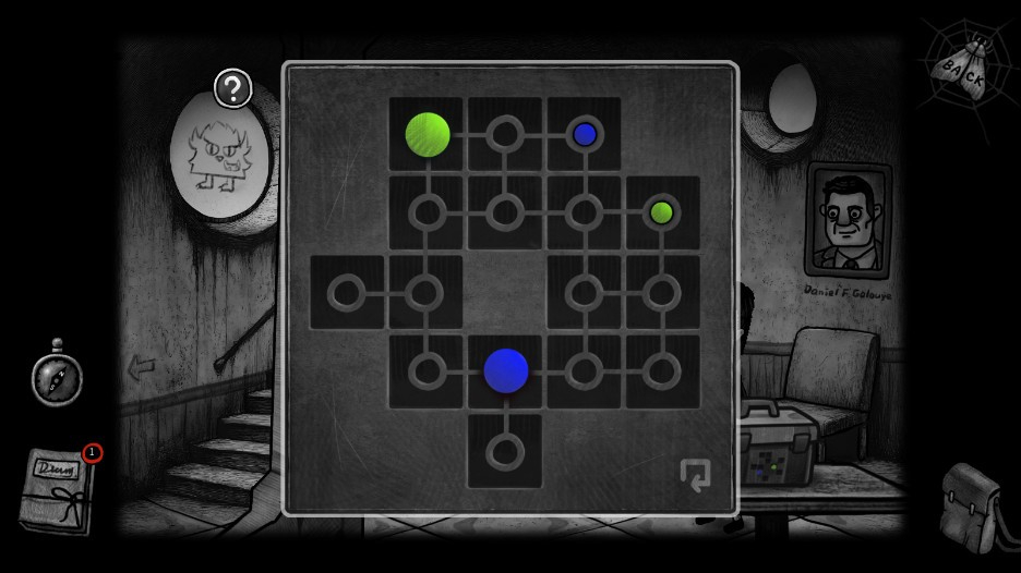 2、将大圆形滑动到相同颜色的小圆形中,完成连线破解谜题。